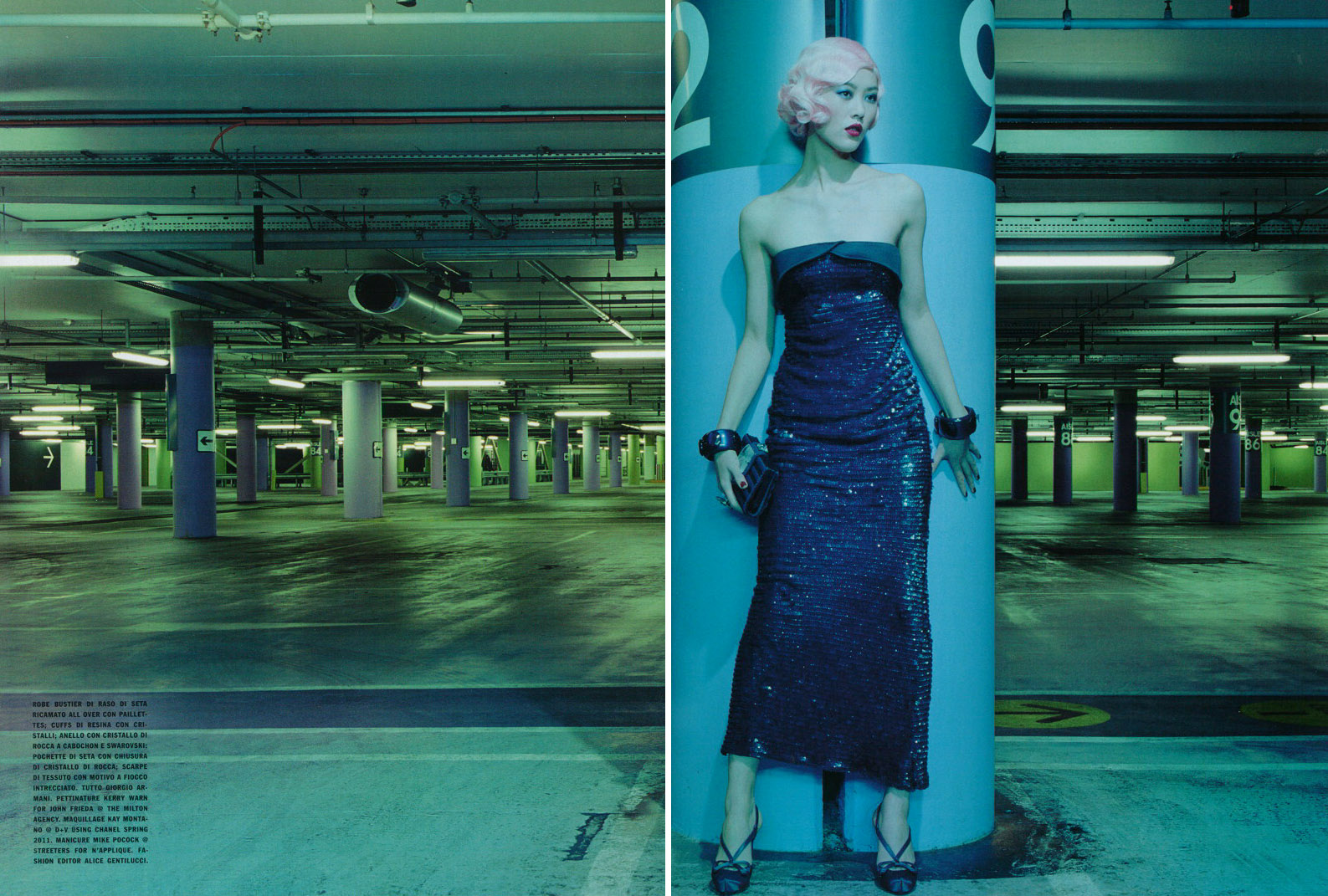 In the style of a strangely-colored film noir setting, an otherwise bland parking lot is turned into a locale of mysterious aura by the team of Miles and Alice. Liu Wen is a 25th-century femme fatale trapped by unforseen circumstances - who will provide her with the means to escape?
